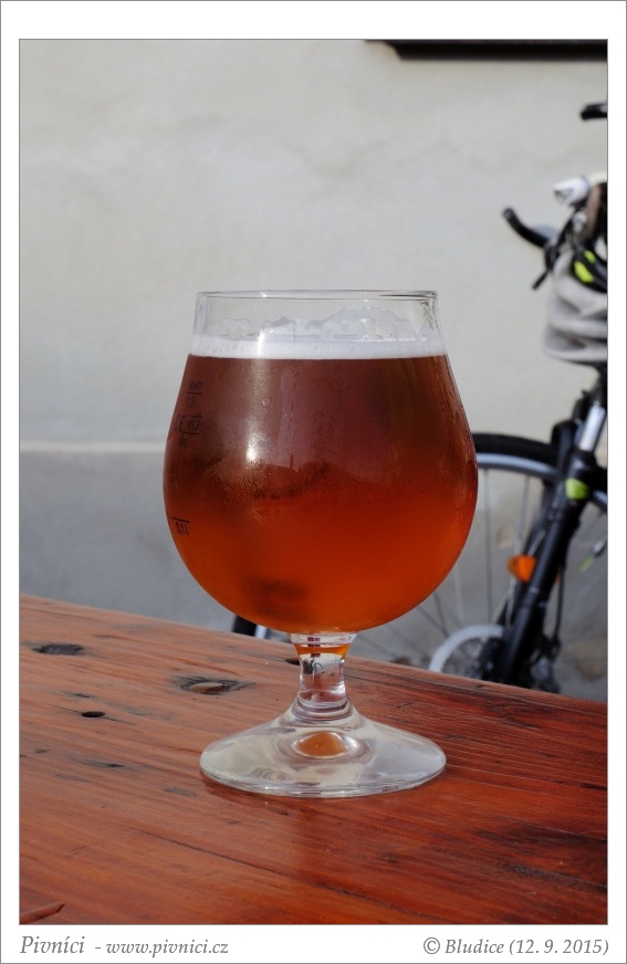 Měděná barva, čiré, hezká trochu nižší světlá pěna, velmi dobře drží.Vůně (2 - průměr):