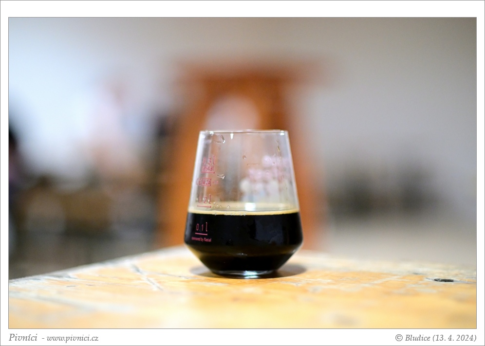Ebenová barva, téměř čiré. Pěkná světle béžová pěna, dobře drží.Vůně (3,5 - velmi dobré):