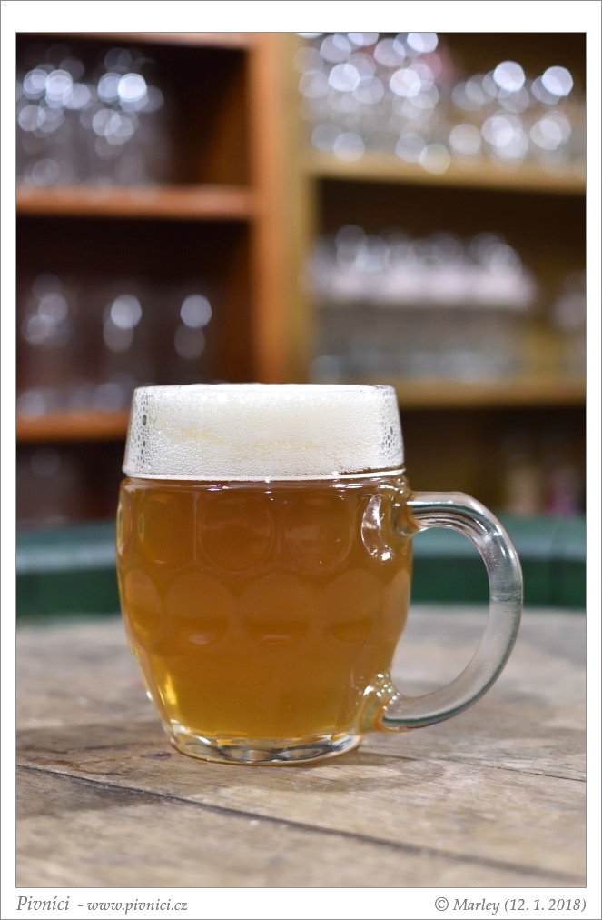 Tmavě zlatá barva, lehce až středně zakalené. Slušná světlá pěna, průměrně drží.Vůně (3 - dobré):