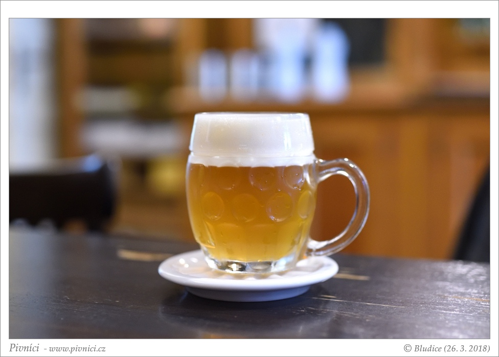 Barva zlatá, lehce zakalené. Pěkná hustá stabilní pěna. Kroužkuje.Vůně (3 - dobré):