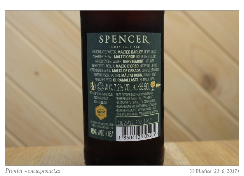 Chutná a pěkně chmelená IPA. Velmi dobře se pije.Minimální trvanlivost: 26. října 2017