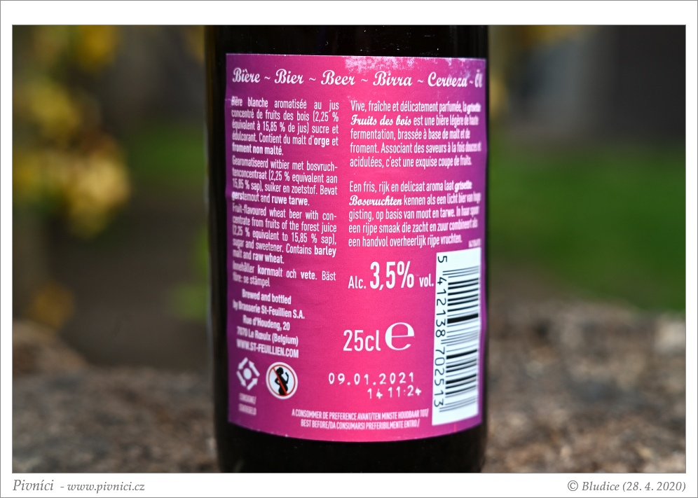 Chuť lesního ovoce, sladší, lehce sirupová, nakyslá. Střední jemný říz, plnější tělo. Kyselost je lehká až střední, doznívání delší, lesního ovoce (maliny, ostružiny), sirupové, lehce rybízové, trochu pecičkové a kořeněné.Celkový dojem (4,5 - průměrné pivo):