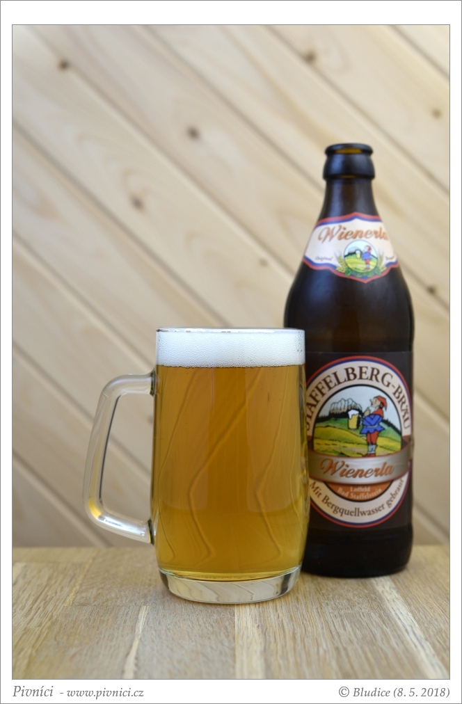 Zlatá barva, téměř čiré. Pěkná světlá pěna, dobře drží.Vůně (3,5 - velmi dobré):