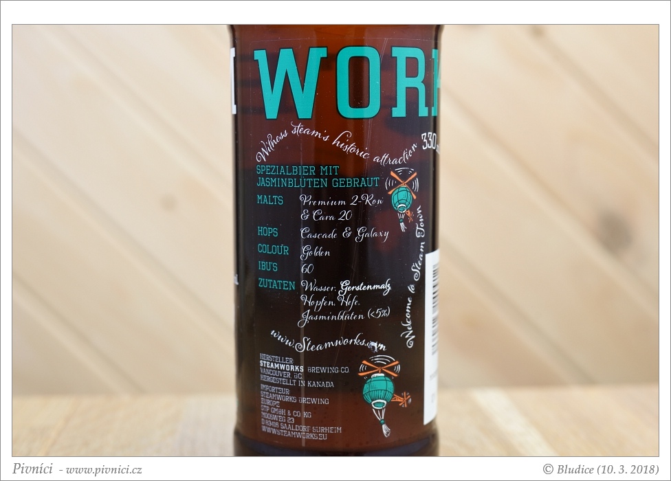Zlatá barva, prakticky čité. Pěkná světlá pěna, dobře drží.Vůně (4 - výborné):