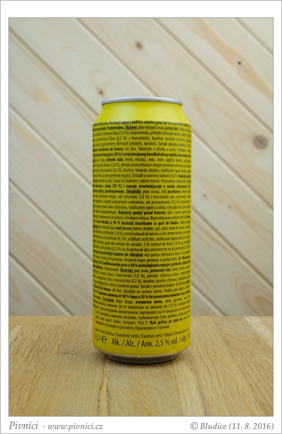 Složení podrobně: 50 % světlé pivo, 50 % limonáda