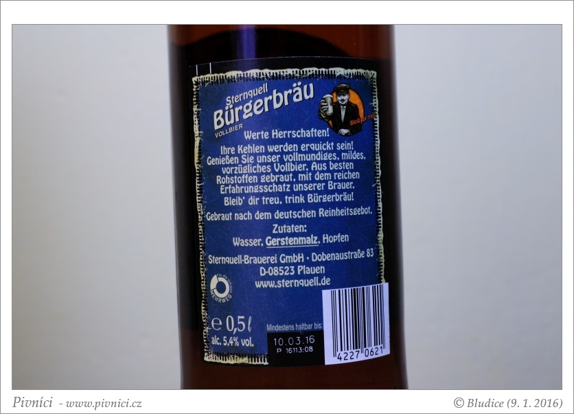 Průměrně pitelné pivo.Minimální trvanlivost: 29. ledna 2016