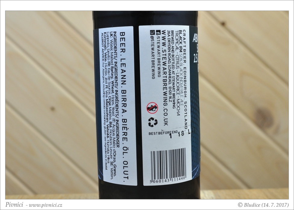 Chutná tmavá IPA. Velmi dobře se popíjí.Minimální trvanlivost: 31. ledna 2018