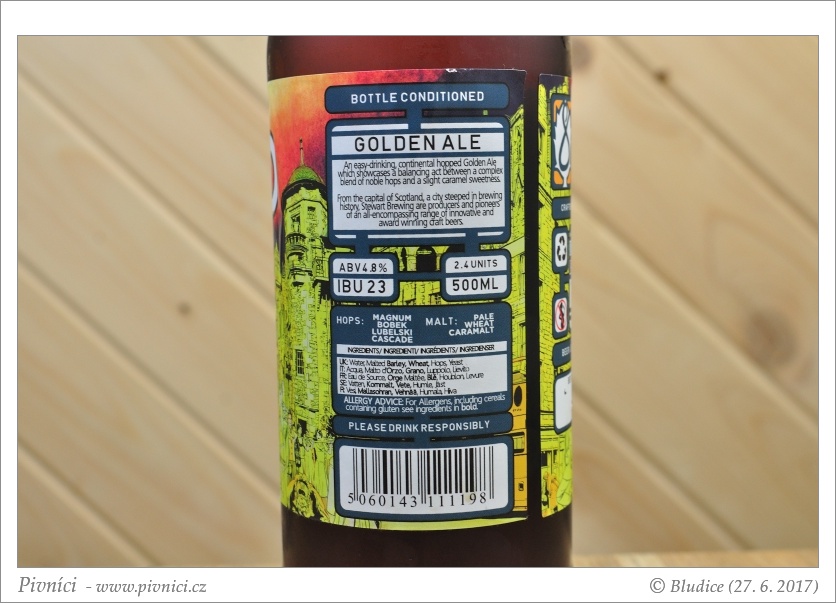 Zlatá barva. čiré, pěkná světlá pěna, slušně drží.Vůně (3 - dobré):