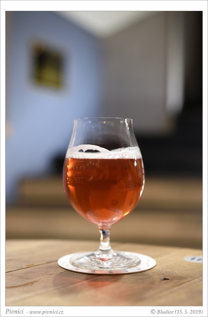 Rubínová až oranžová barva, čiré. Slušná světlá pěna s okrovým nádechem, dobře drží.Vůně (3,5 - velmi dobré):