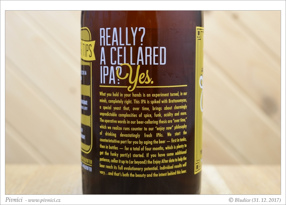Výrazná, hodně peprná belgická IPA, výborně se popíjí.Vzhled (3 - dobré):