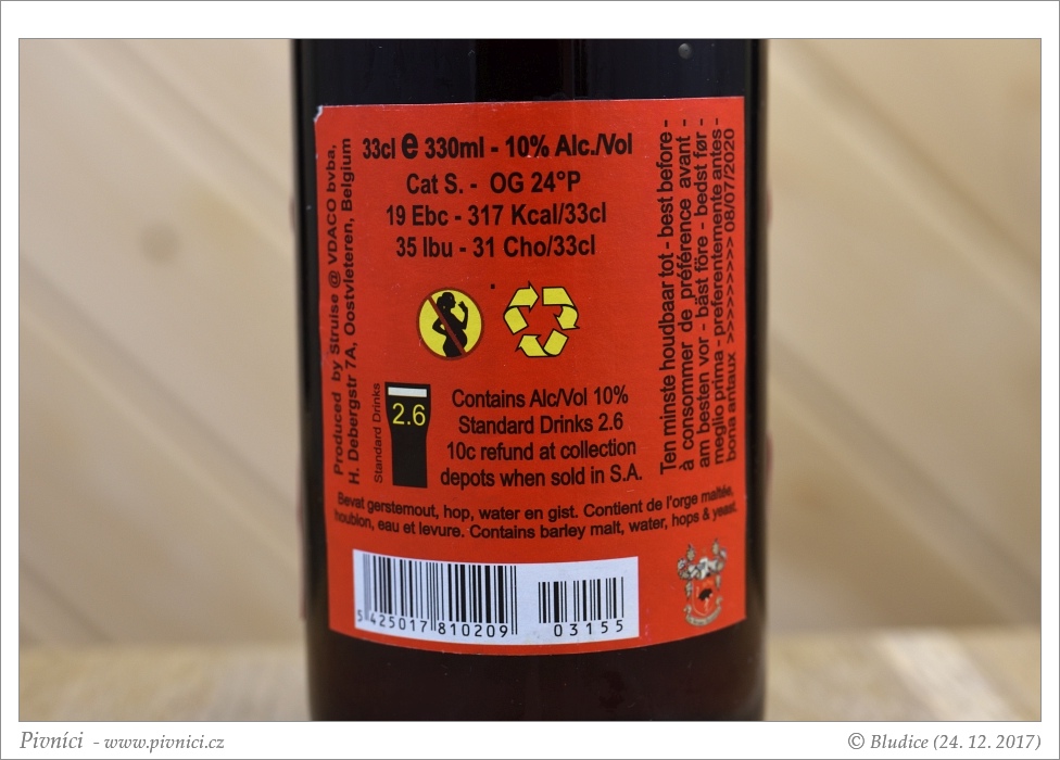 Fajn kořeněnější silný belgičan, velmi dobře se popíjí.Minimální trvanlivost: 8. července 2020