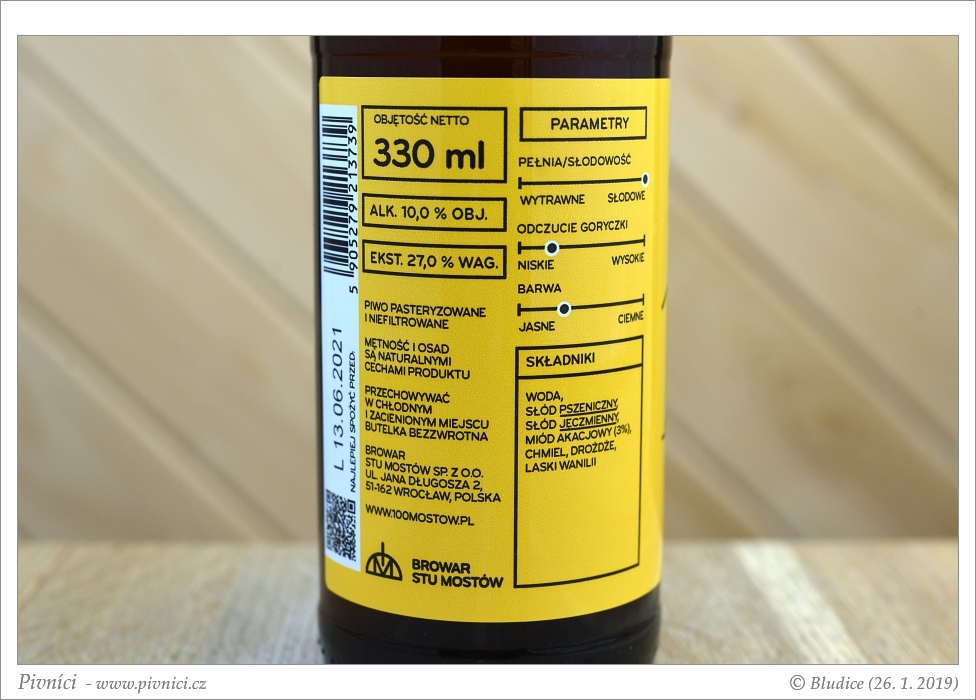 Chutný medový slaďouš. Velmi dobře se popíjí.Minimální trvanlivost: 13. června 2021