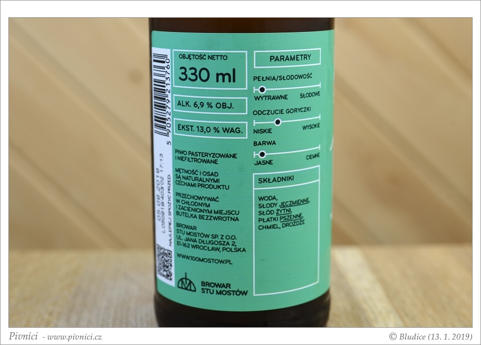 Osvěžující a dobře pitelné pivo.Minimální trvanlivost: 5. září 2019