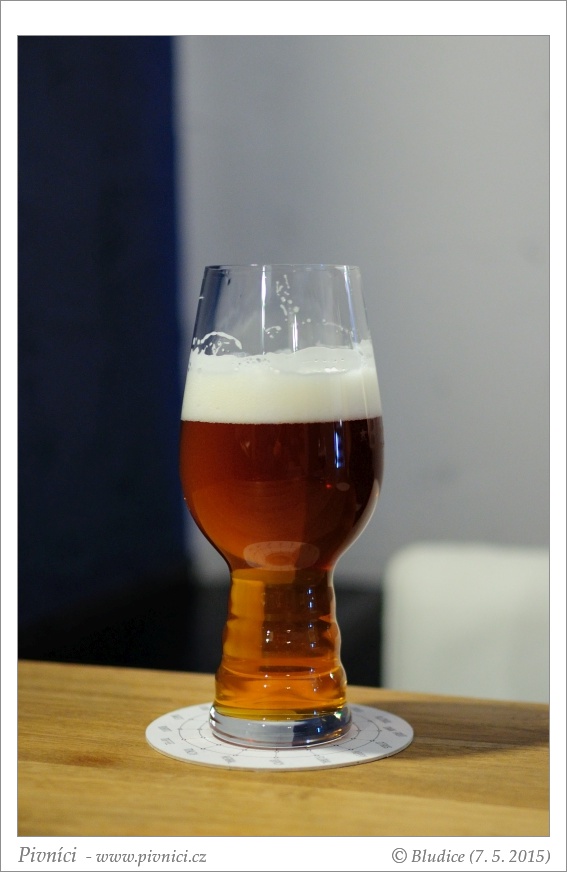 Měděná barva, čiré, pěkná světlá pěna s okrovým nádechem, slušně drží, lehce kroužkuje.Vůně (2,5 - lehce nadprůměr):