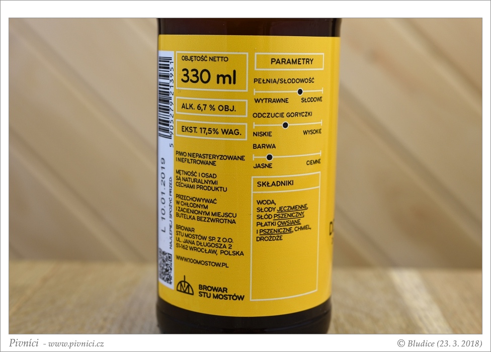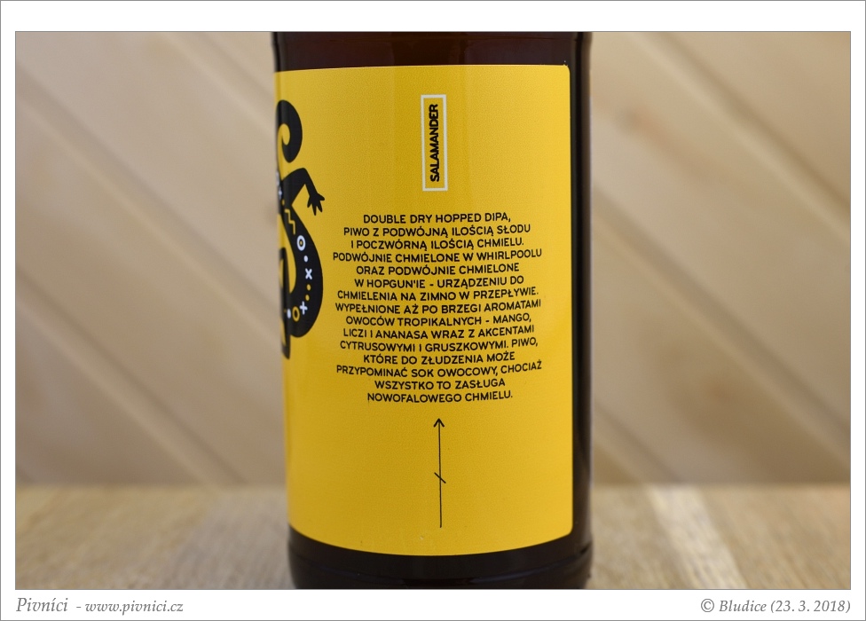 Fajn silnější IPA. Dobře se popíjí.Minimální trvanlivost: 10. ledna 2019