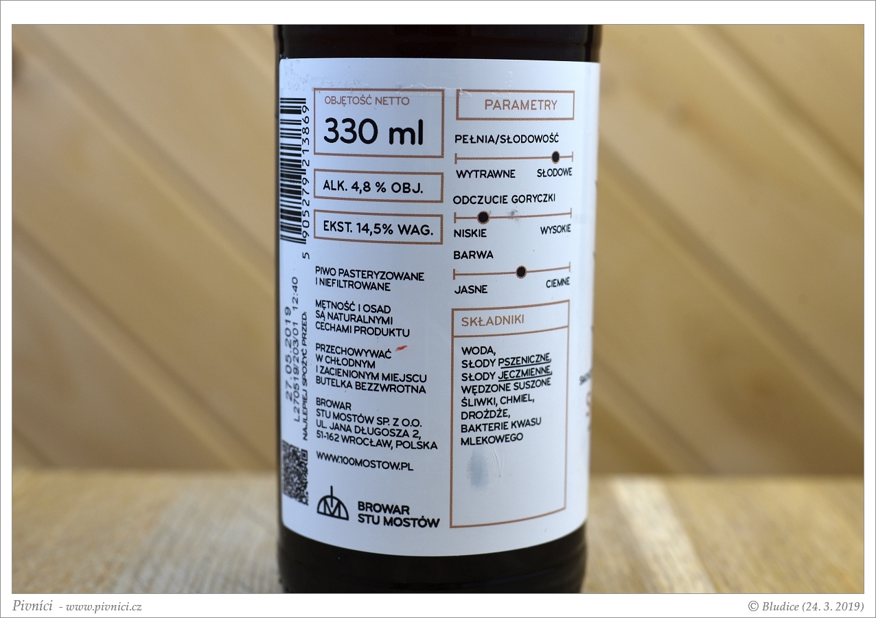 Zajímavé a velmi dobře se popíjející pivo se znatelnými tóny švestek i portského.Minimální trvanlivost: 27. května 2019
