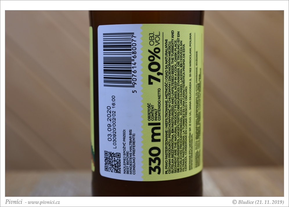 Chutná kyselá IPA, velmi dobře se popíjí.Minimální trvanlivost: 3. září 2020