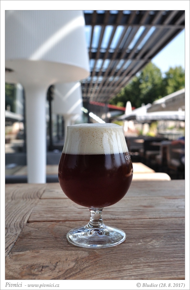 Mahagonová barva, lehce zakalené, pěkná světlá pěna s okrovým nádechem, výborně drží.Vůně (3 - dobré):
