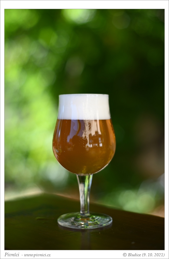 Barva tmavší zlatá, lehce zakalené. Pěkná hustá stabilní pěna.Vůně (3 - dobré):