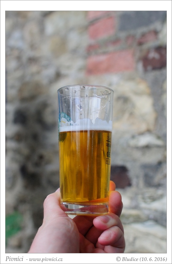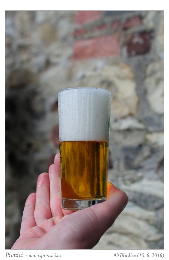 Zlatá barva, téměř čiré, pěkná světlá pěna, dobře drží.Vůně (3 - dobré):