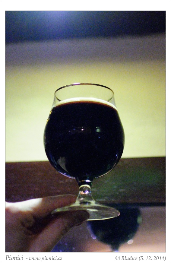Prakticky černá barva, zdá se lehce zakalené, slušná béžová pěna, příliš nedrží.Vůně (1,5 - nedobré):