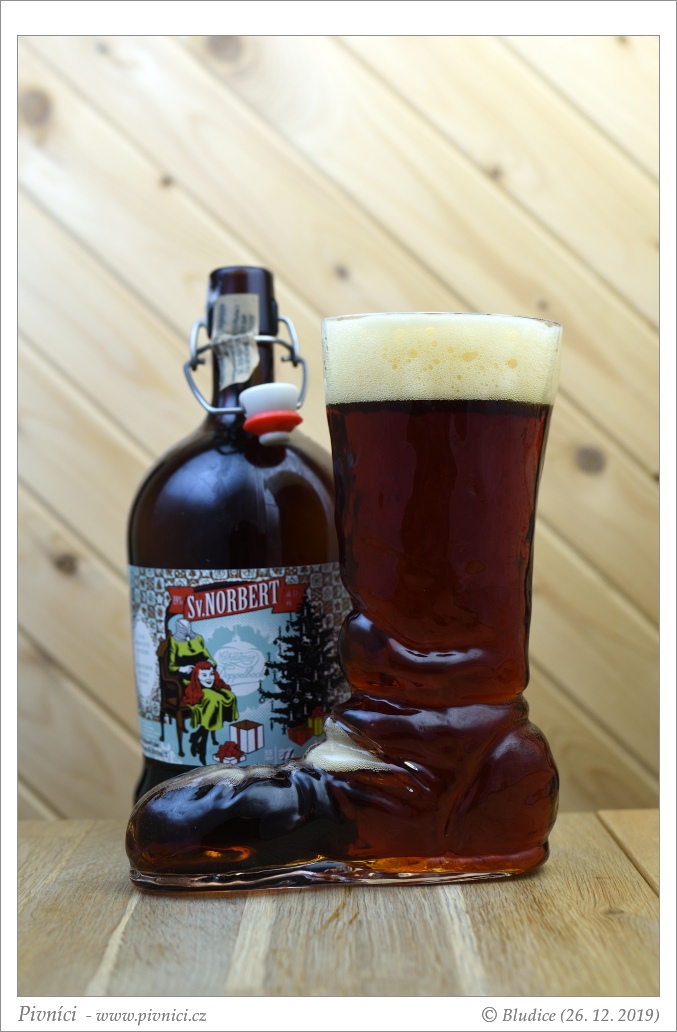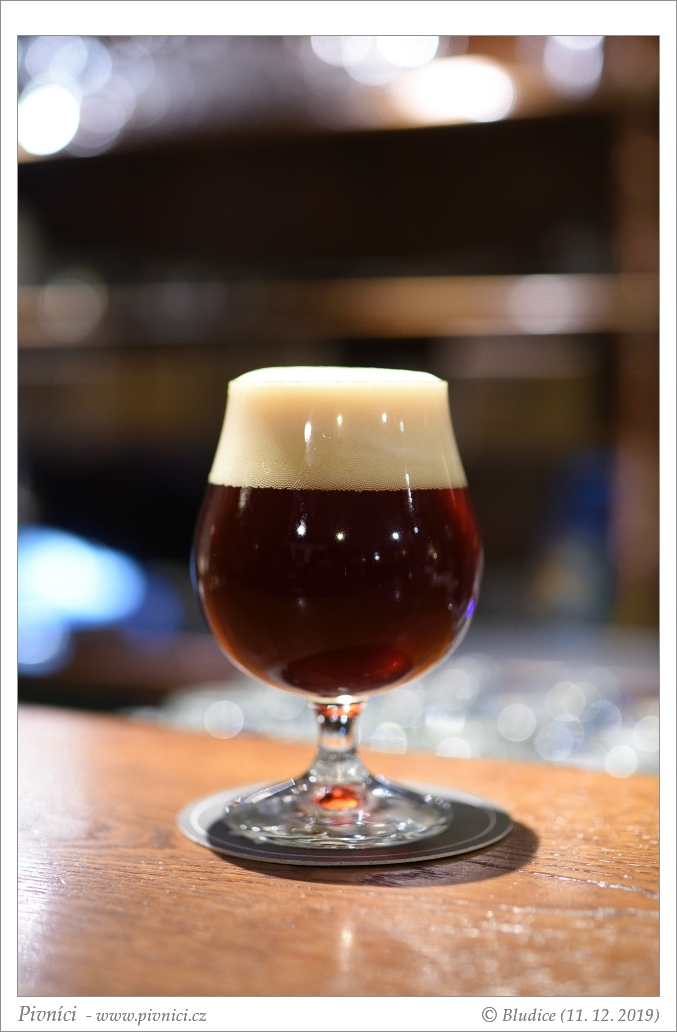 Barva mahagonová, čiré. Pěkná hustá stabilní pěna velmi světle béžové barvy.Vůně (3 - dobré):
