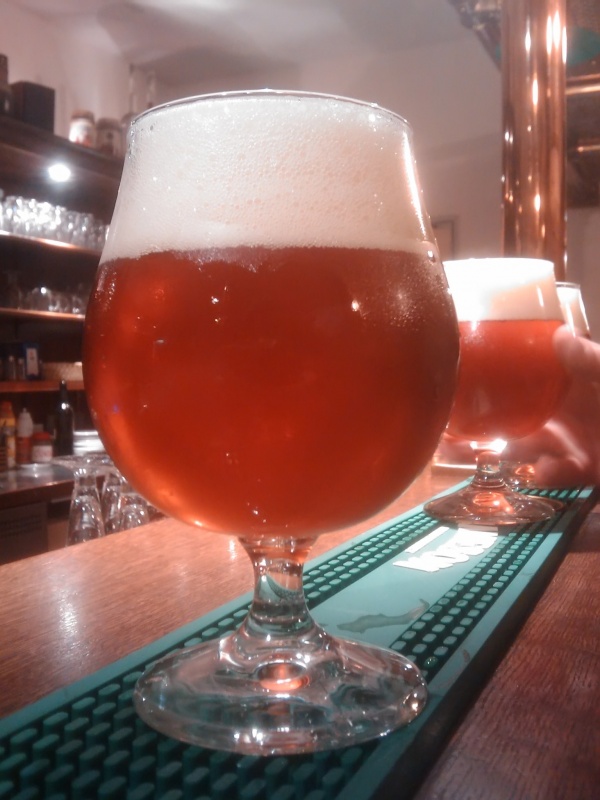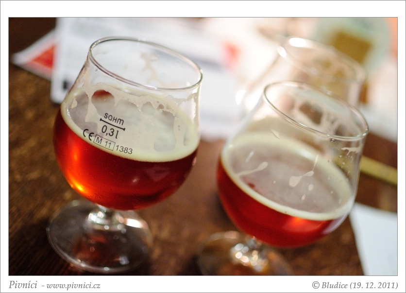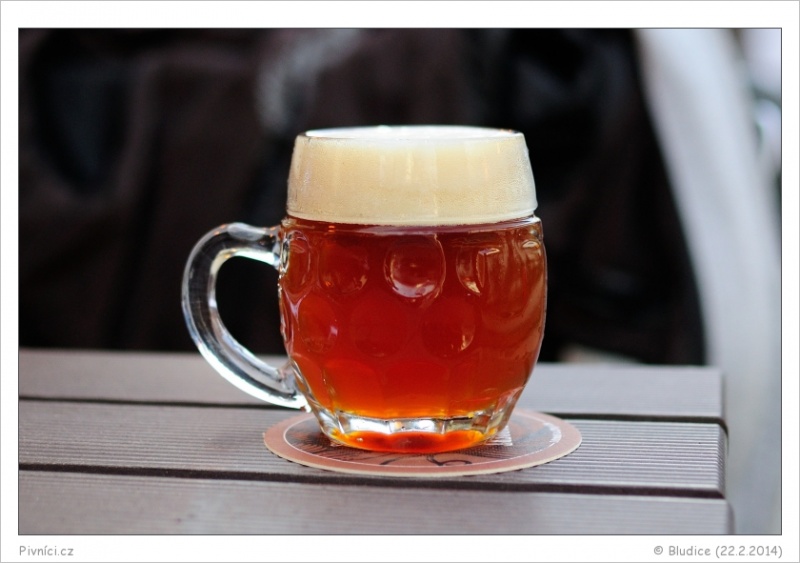 Tmavě měděná načervenalá barva, zakalené, krásná hustá sametová pěna, světle béžové barvy, kroužkuje.Vůně (3,5 - velmi dobré):