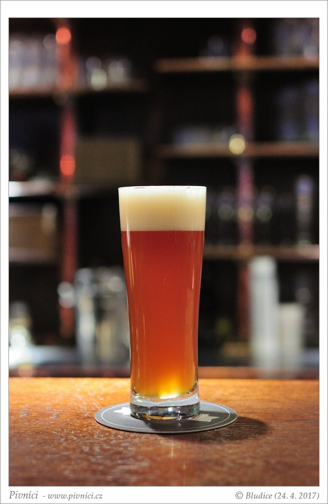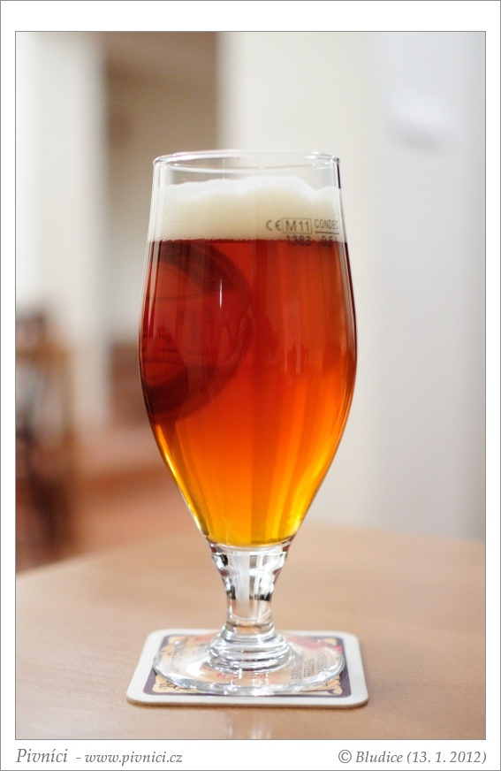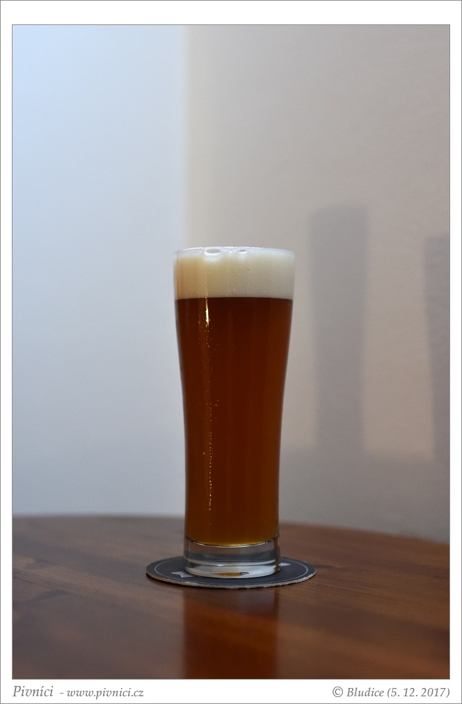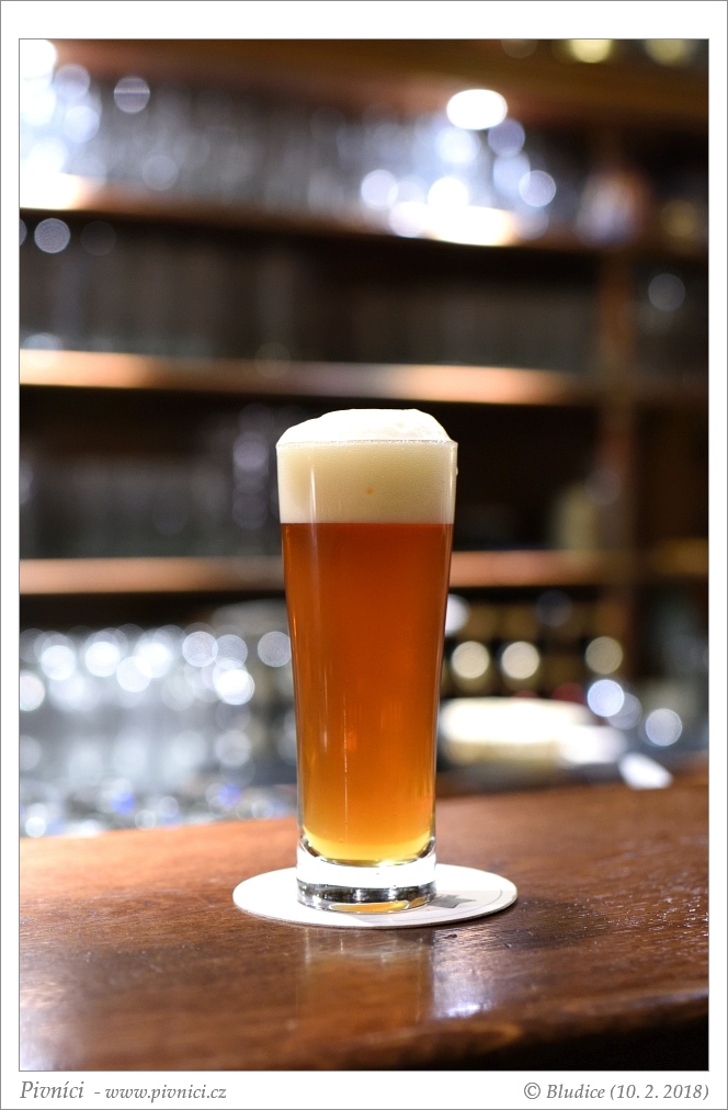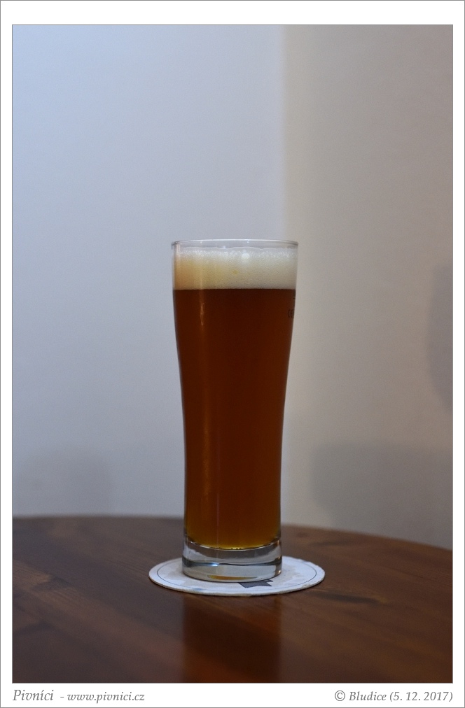 Barva světle měděná, téměř čiré. Pěkná hustá stabilní pěna.Vůně (3 - dobré):