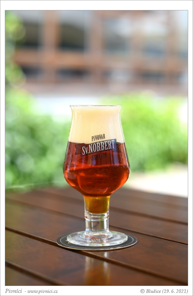 Tmavě měděná barva, téměř čiré. Pěkná světlá pěna, dobře drží.Vůně (4 - výborné):