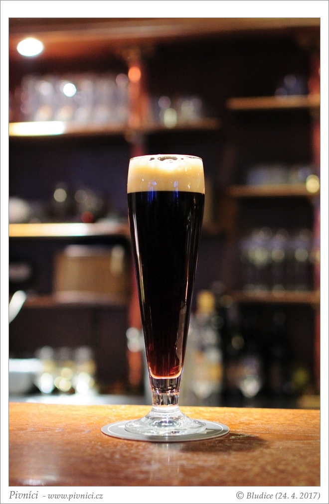 Barva tmavě hnědá, téměř čiré. Vyšší pěkná hustá stabilní pěna se světle béžový nádechem.Vůně (3 - dobré):