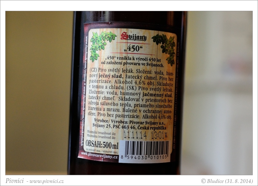 … slupky. Ochutnali jsme i relativně novou 450 z pivovaru Svijany. Je chmelově kořenitá a bylinná, obilně sladová, …
