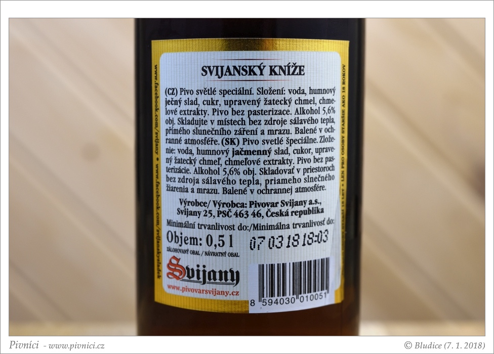 Okej pivo, celkem dobře pitelné.Minimální trvanlivost: 7. března 2018