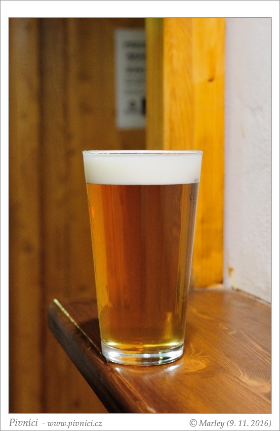 Zlatá barva, téměř čiré, pěkná světlá pěna, dobře drží.Vůně (1,5 - nedobré):