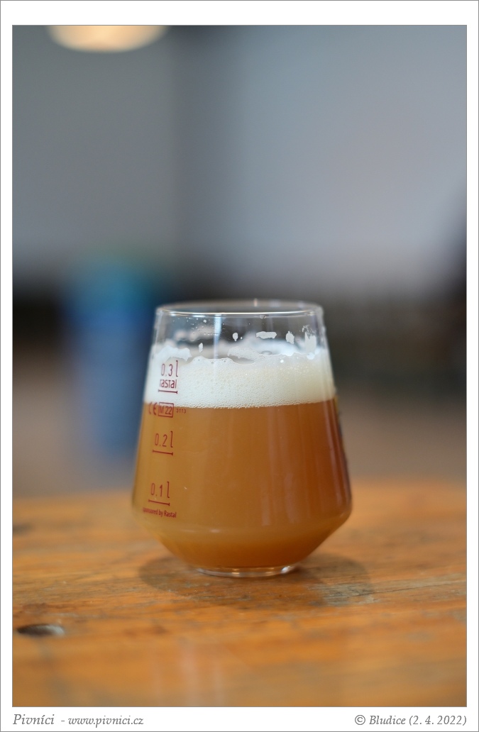 Tmavě zlatá barva s oranžovým nádechem, velmi zakalené. Pěkná světlá pěna, dobře drží.Vůně (3,5 - velmi dobré):