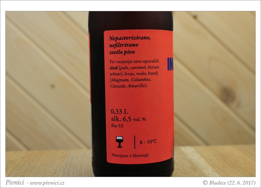 Sladší IPA, čistá, pěkně chmelená. Dobře se pije.Minimální trvanlivost: 8. října 2017