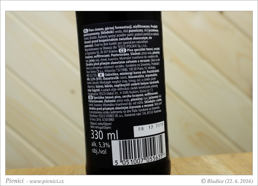 Příjemný a velmi dobře pitelný porter.Minimální trvanlivost: 8. prosince 2016