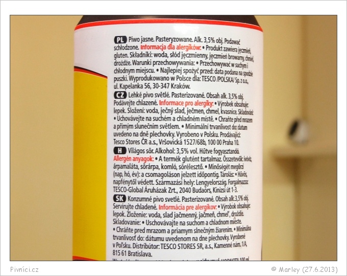 Nedobré a hůře pitelné pivo, někde na úrovni těch horších českých supermarketovek. Ale kupodivu ne úplně nejhorší.Minimální trvanlivost: 15. 3. 2014