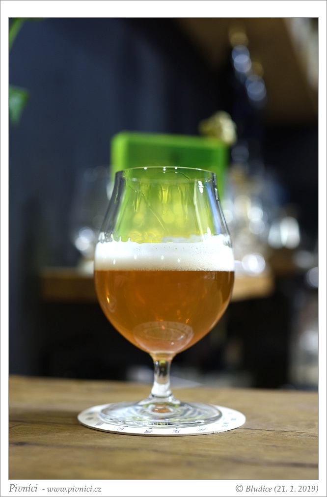 Zlatá barva, velmi lehce zakalené. Pěkná světlá pěna, dobře drží.Vůně (4 - výborné):