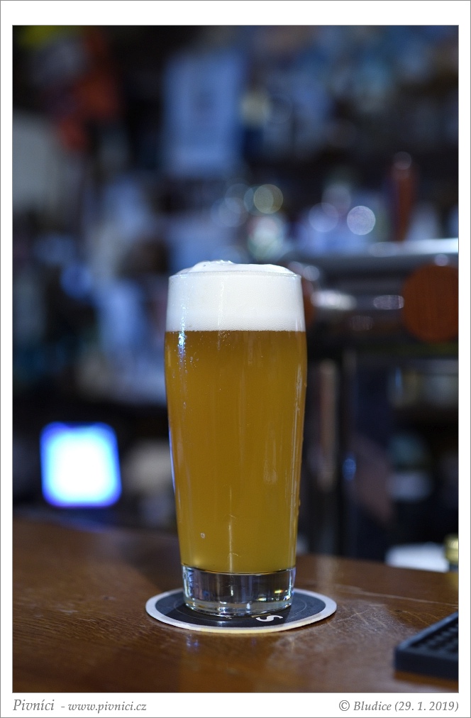Zlatá barva, více zakalené. Pěkná světlá pěna, dobře drží.Vůně (3,5 - velmi dobré):