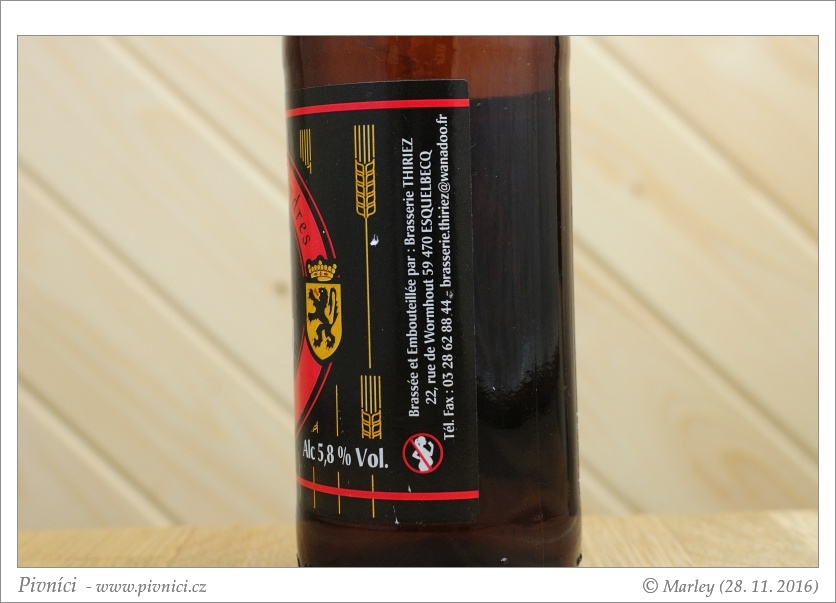 Barva oranžovo-oříšková, silně zakalená, průměrná pěna.Vůně (3 - dobré):