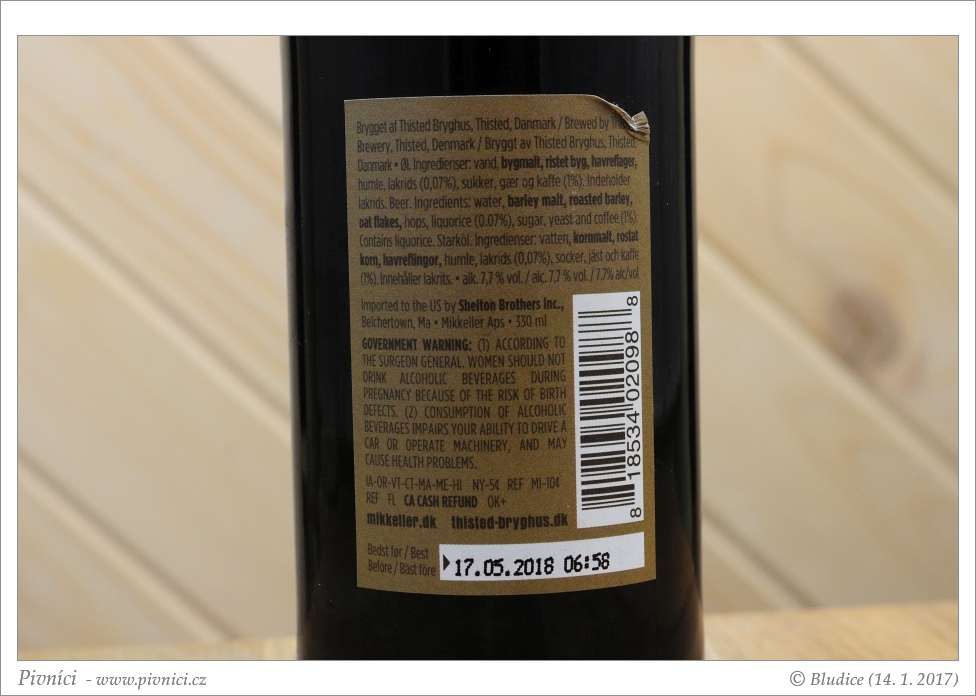 Drsnější porter, výrazně kávový a pražený. Velmi dobře se popíjí.Minimální trvanlivost: 17. května 2018
