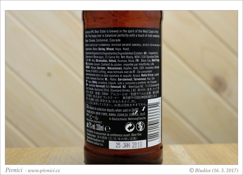 Fajn IPA. Trochu sladší, ale pěkně chmelená. Velmi dobře se popíjí.Minimální trvanlivost: 25. ledna 2018