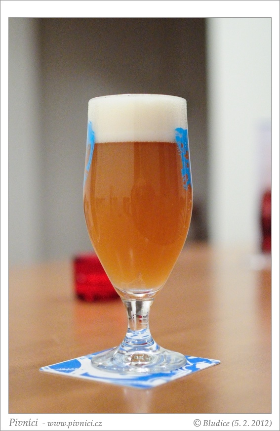 Světle zlatá barva, lehce zakalené, pěkná bílá pěna, výborně drží, lehce kroužkuje.Vůně (4,5 - úchvatné):