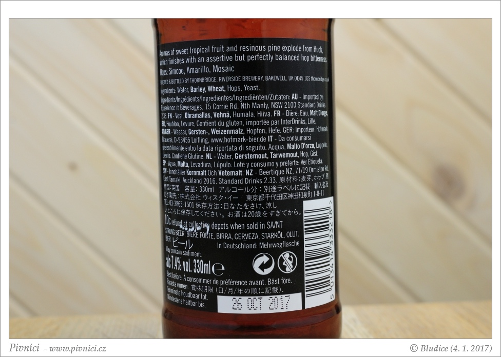 Chutné, výrazně a pěkně chmelené pivo. Výborně se popíjí.Minimální trvanlivost: 26. listopadu 2017