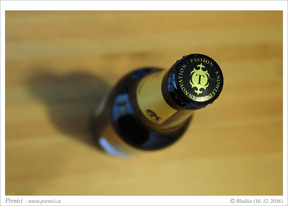 Světle zlatá barva, téměř čiré, pěkná světlá pěna, skvěle drží, hezky kroužkuje.Vůně (4,5 - úchvatné):