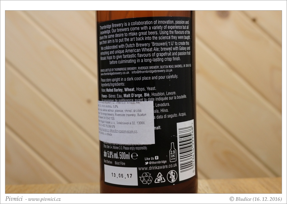 Chutné, svěží, pěkně chmelené pivo. Výborně se pije.Minimální trvanlivost: 13. června 2017