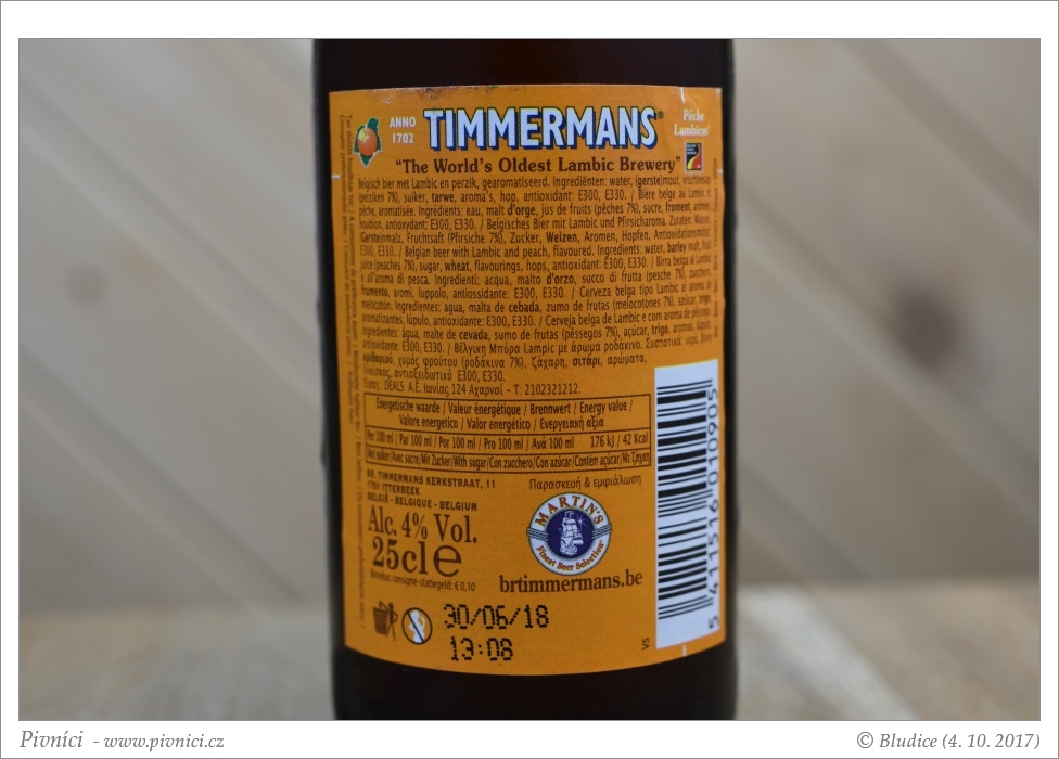 Celkem příjemně ovocné pivo, ale příliš zajímavé není. Mohlo by být trochu méně sladké.Minimální trvanlivost: 30. června 2018