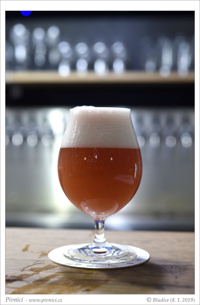Barva oranžovo-růžová silně zakalené. Celkem stabilní pěna s velmi světle narůžovělým nádechem.Vůně (1,5 - nedobré):