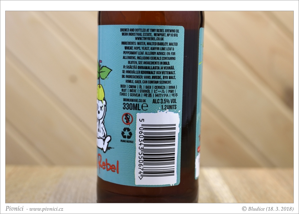 Celkem zajímavý a osvěžující kyseláč. Sice trochu divočina, ale pije se dobře.Minimální trvanlivost: 3. července 2018
