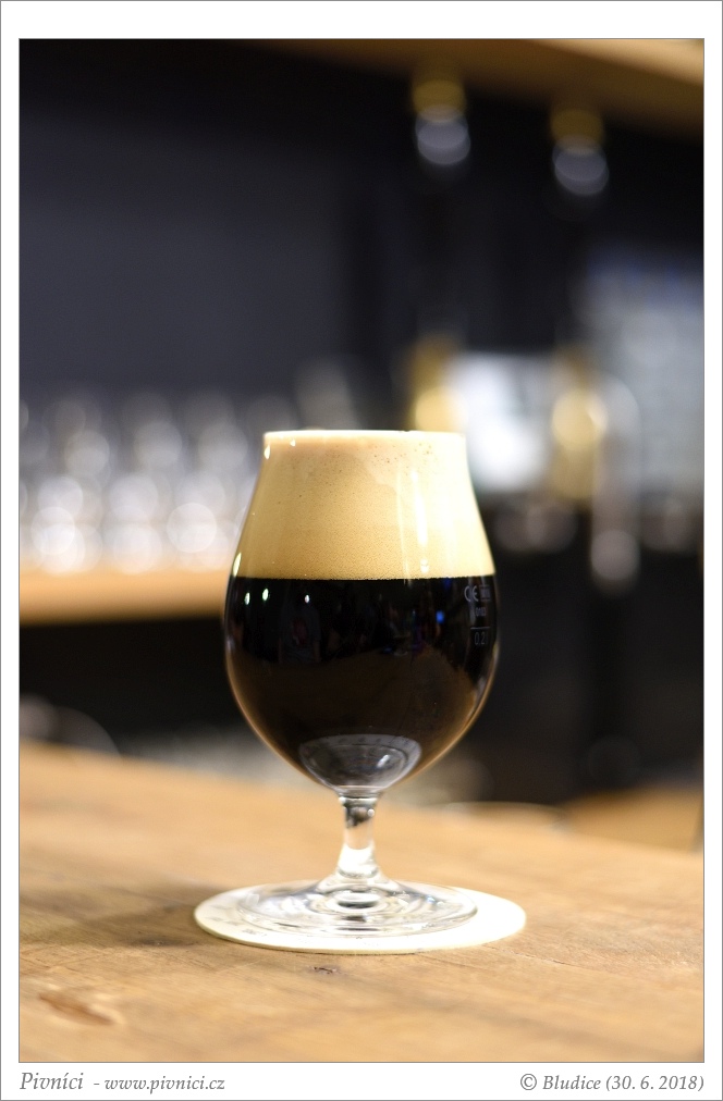 Ebenová až úplně černá barva, zdá se čiré. Pěkná béžová pěna, dobře drží.Vůně (4 - výborné):